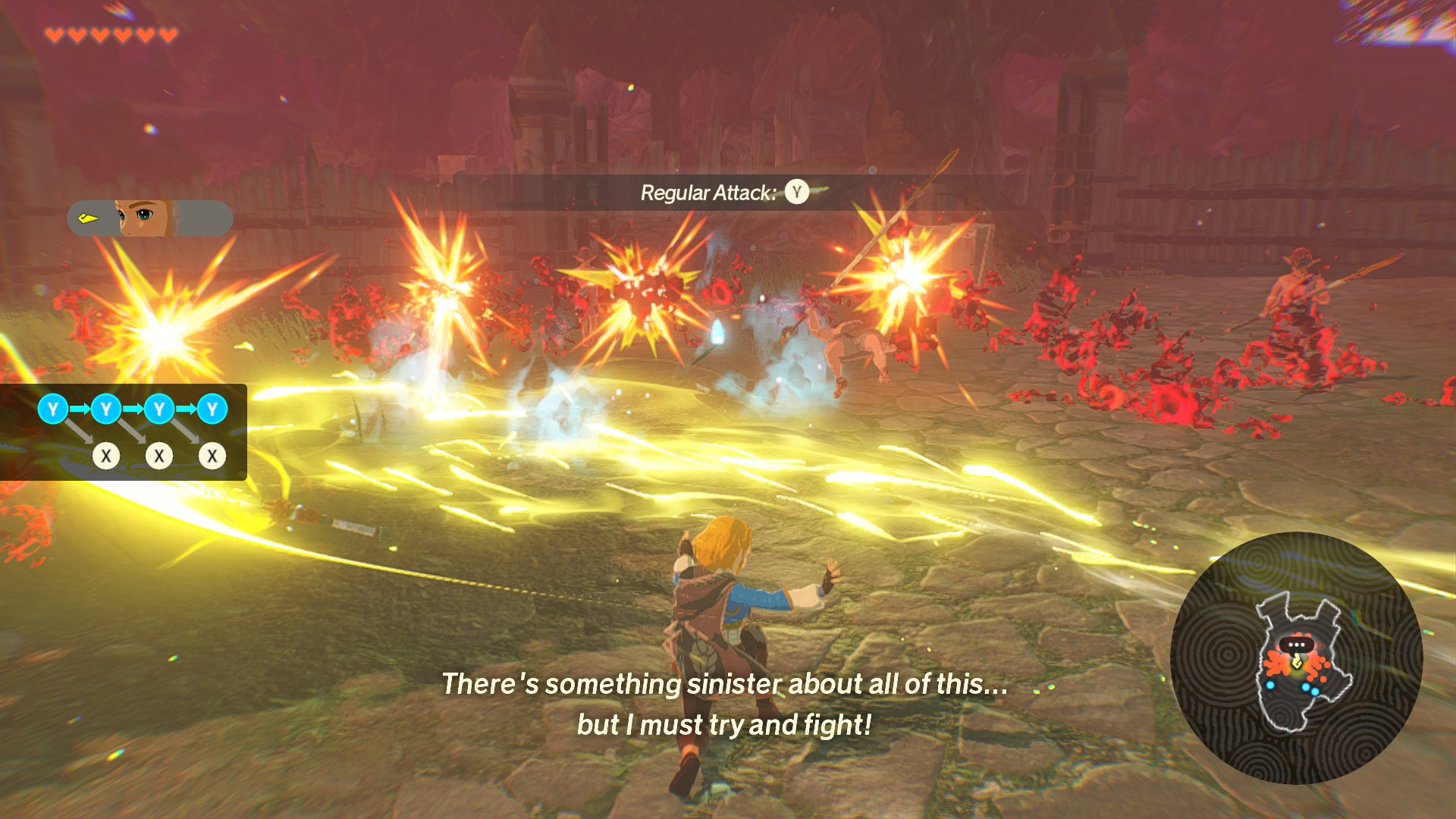 Hoewel Age of Imprisonment een erg veilige sequel is, voegt het toch een aantal noemenswaardige nieuwigheden toe. Zo zijn de missies waarin je een langzame Divine Beast bestuurt vervangen door Star Fox-achtige scenario’s waarin je een heuse shoot ‘em up speelt. Dit is verrassend goed uitgevoerd en bovendien een leuke afwisseling tussen al het hakken door. De meest ingrijpende toevoeging zijn de Unique Skills. Dit zijn vaardigheden die je uit kunt voeren door met de R-knop een aantal snelkoppelingen op te roepen, maar er zit wel een aardige cooldown op. Unique Skills zijn met name effectief tegen sterkere vijanden zoals bazen. Deze vijanden voeren eens in de zoveel tijd een aanval uit waarbij ze rood gloeien. Houden ze bij die aanval bijvoorbeeld een schild voor zich, dan zal de Unique Skill met een schildicoontje ze onderbreken en vatbaar maken voor een tegenaanval. Tijdens de campagne van Age of Imprisonment ontgrendel je steeds meer van dit soort Unique Skills, waarbij met name de Sages een aantal erg leuke aanvallen tot hun beschikking krijgen. Het zorgt ervoor dat je tussen het hersenloze hakken door ook een beetje moet letten op wat een vijand doet. Daarmee geeft dit het vechten een iets tactischere inslag. Met de nadruk op ‘iets’.