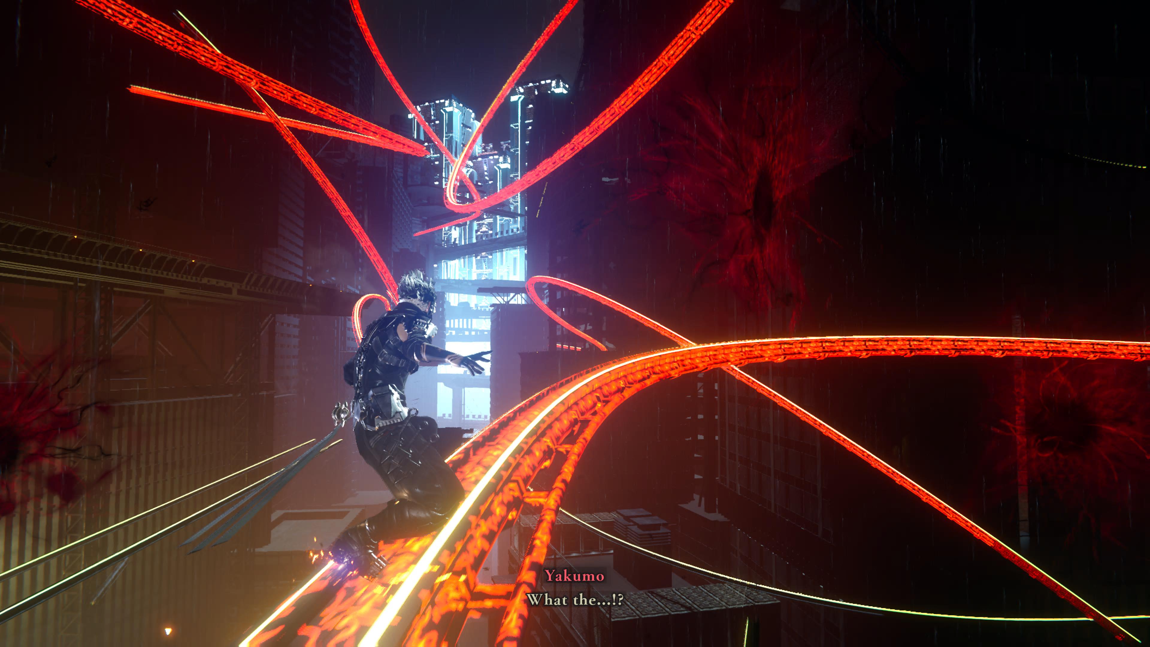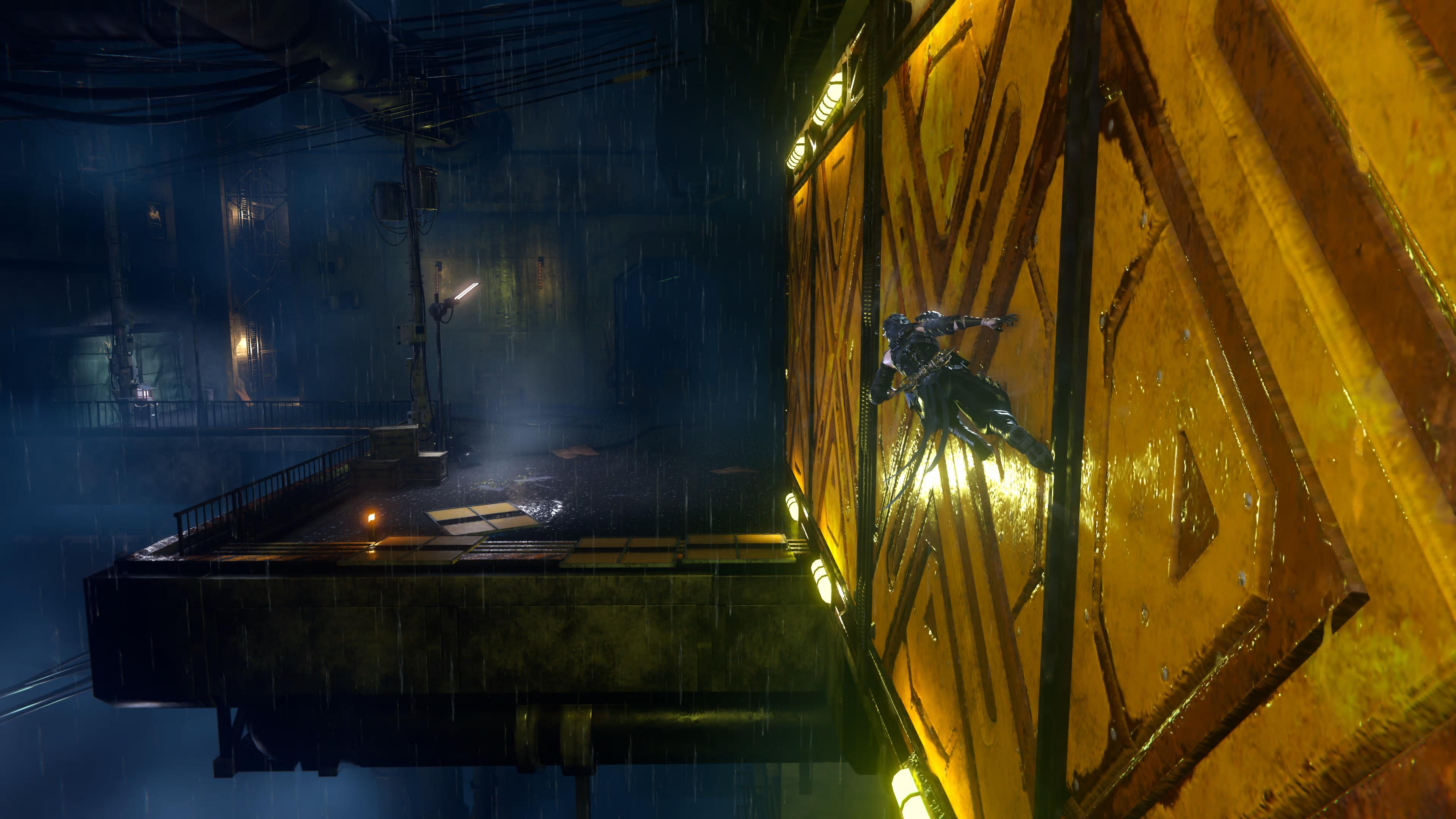 Zoals gezegd voelt Ninja Gaiden 4 vooral aan als een product van PlatinumGames. Vreemd is dat niet, het spel draait tenslotte op een eigen engine van die ontwikkelaar. Als ik zou moeten gokken, zou ik zeggen dat hier een iets opgepoetste versie van de Bayonetta 3-engine is gebruikt. Meermaals zag ik textures en grafische effecten die niet zouden misstaan op de Switch. Het spel zet meteen zijn slechtste voet voor door te openen in een donkere cyberpunk-stad met lelijke regeneffecten die vooral hun neerslag hebben op de framerate. Die fluctueert nogal in deze eerste omgeving. Tegelijkertijd is de resolutie in de (haast verplichte) Performance-modus vrij laag, wat resulteert in kartelige randjes hier en daar. Dat de game op technisch vlak te wensen laat is tot daaraantoe, maar wat moeilijker door de vingers te zien is, is hoe ongeïnspireerd de meeste omgevingen zijn.