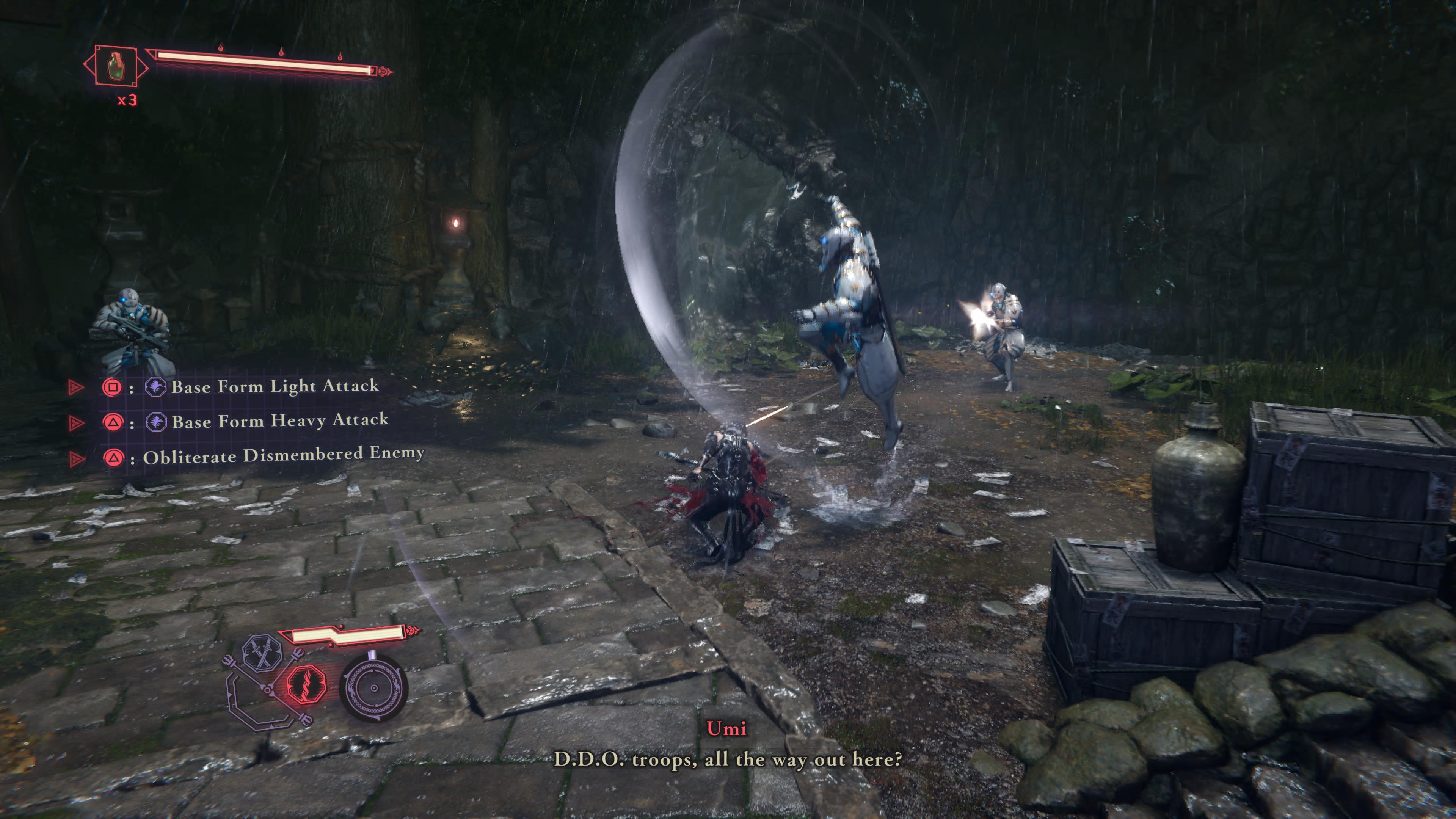 Kenmerkend voor deze versie van Ninja Gaiden zijn de Bloodraven-vorm (Gleam wanneer je met Ryu speelt) en de nadruk op vele verdedigende manoeuvres. Door op L2 te drukken activeer je de krachtige Bloodraven-vorm. Het op dat moment door Yakumo gebruikte wapen transformeert dan en extra sterke aanvallen komen dan tot zijn beschikking. Deze aanvallen zijn in staat om vijanden te onderbreken wanneer ze speciale aanvallen afvuren en kunnen hun verdediging doorbreken. Efficiënt inzetten van deze moves is noodzakelijk, want ze maken gebruik van schaarse energie. Ook van deze aanvallen heb je, zeker nadat je alle wapens hebt vrijgespeeld, meer dan genoeg. De opties zijn tegen het einde van de game legio en de ruimte voor creatieve expressie is groot.