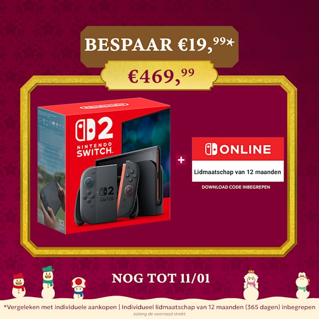 €469,99 My Nintendo Store, maar dan wel tot zondag 11 januari inclusief een gratis individueel Nintendo Switch Online-lidmaatschap van twaalf maanden, ter waarde van €19,99.